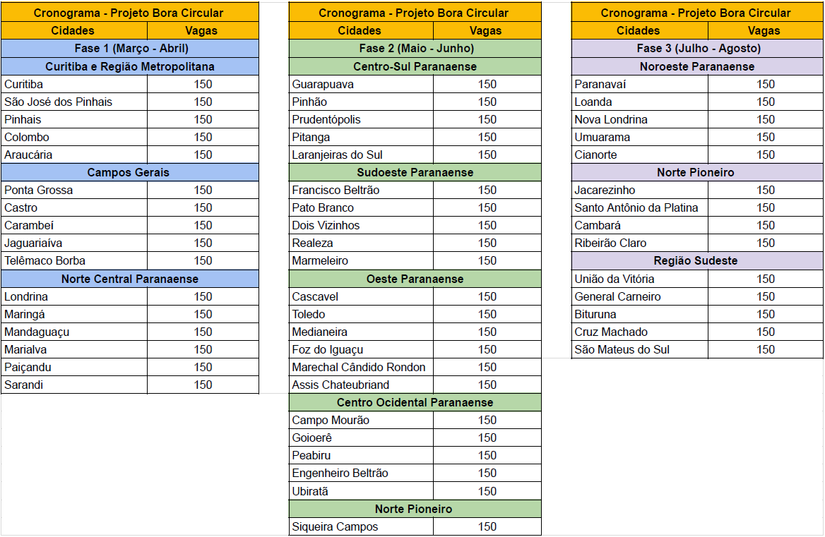 - Podem participar do Projeto Bora Circular: